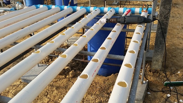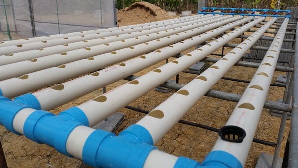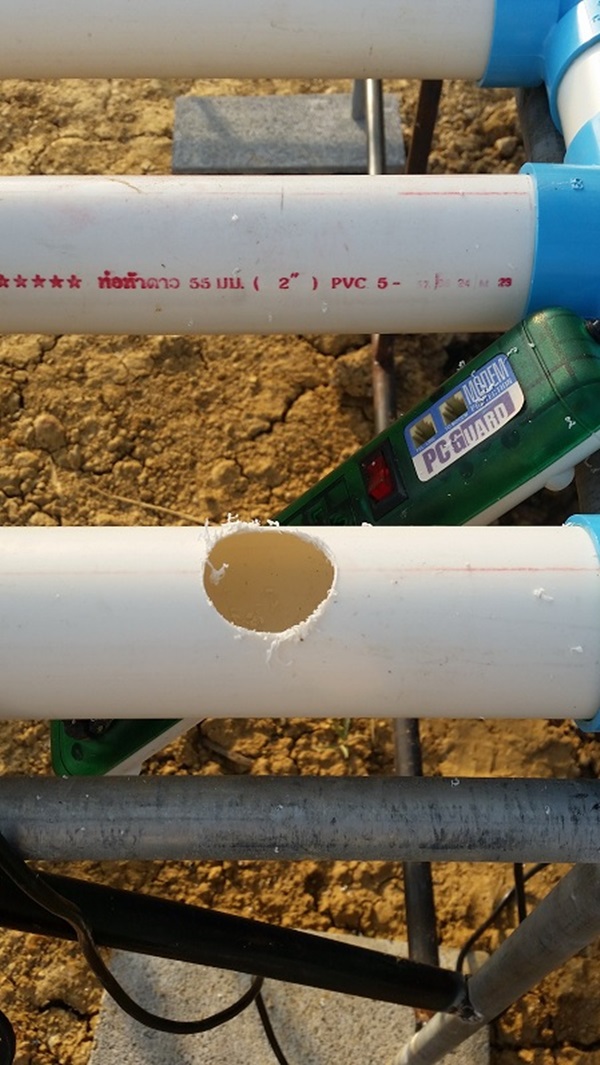 และก็จะใช้ท่อ PVC ที่เป็นตัววัดระยะเพื่อให้ได้ระยะห่างที่เท่ากันกับด้านต้นราง